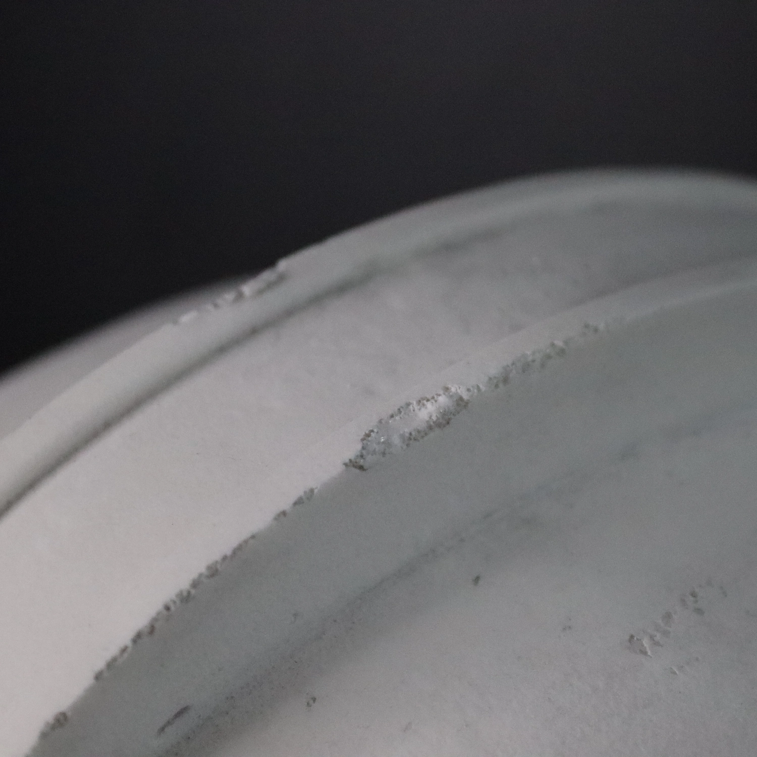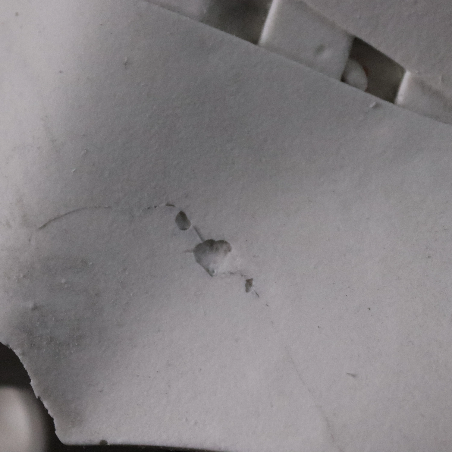 Wadliwy odlew, defekt w strukturze żywicy, ubytki, kruszenie się zewnętrznej warstwy.